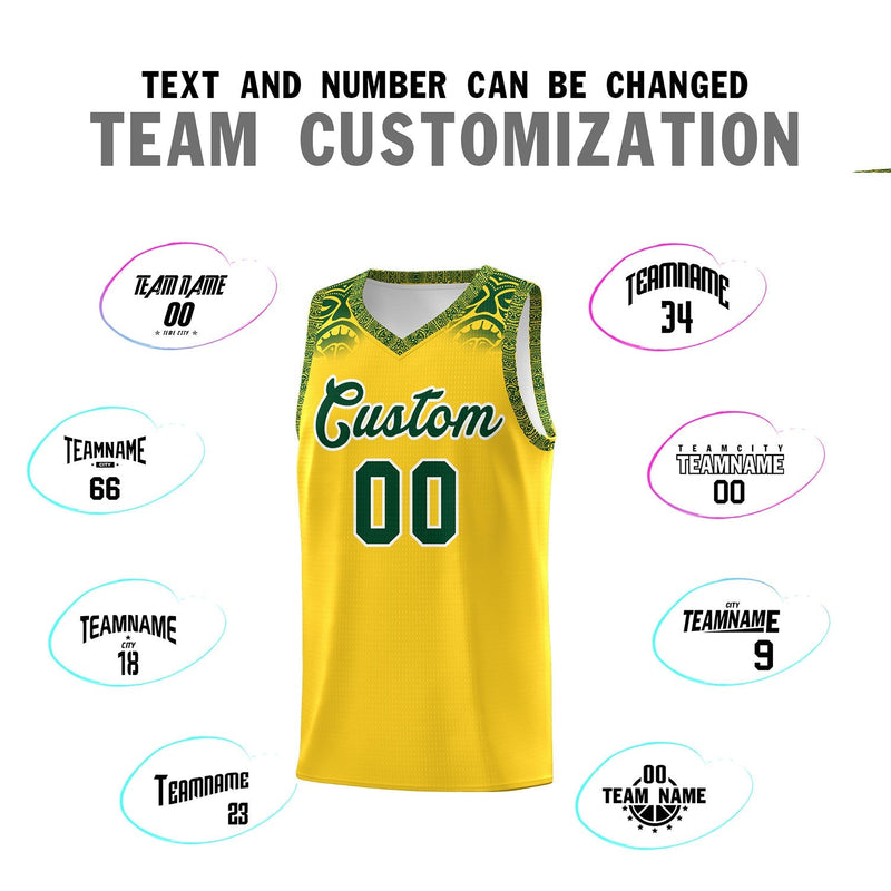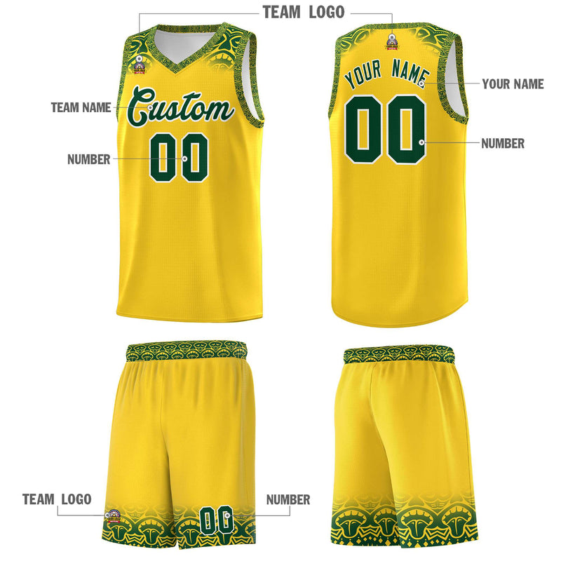 Custom Gold Green Personalized Indians Print Sets Sports Uniform Basketball Jersey