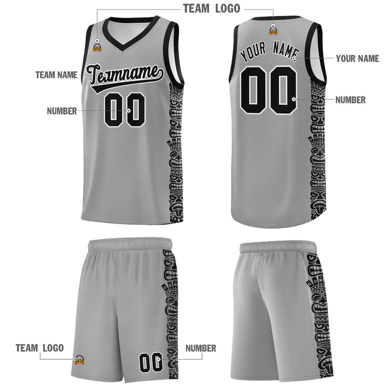 Custom Gray Black Personalized Indians Pattern Sets Sports Uniform Basketball Jersey