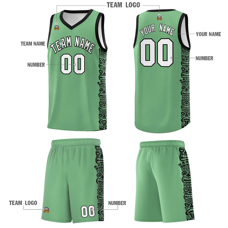 Custom Green Black Personalized Indians Pattern Sets Sports Uniform Basketball Jersey