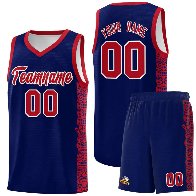 Custom Navy Red Personalized Indians Pattern Sets Sports Uniform Basketball Jersey