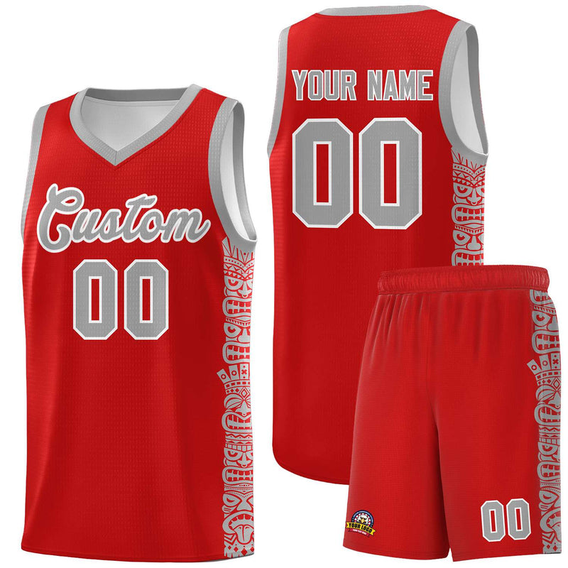 Custom Red Gray Personalized Indians Pattern Sets Sports Uniform Basketball Jersey