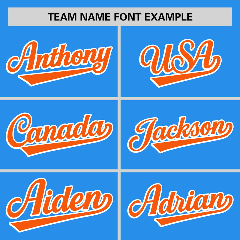 Custom Powder Blue Orange Varsity Full-Snap Color Block Letterman Baseball Jacket
